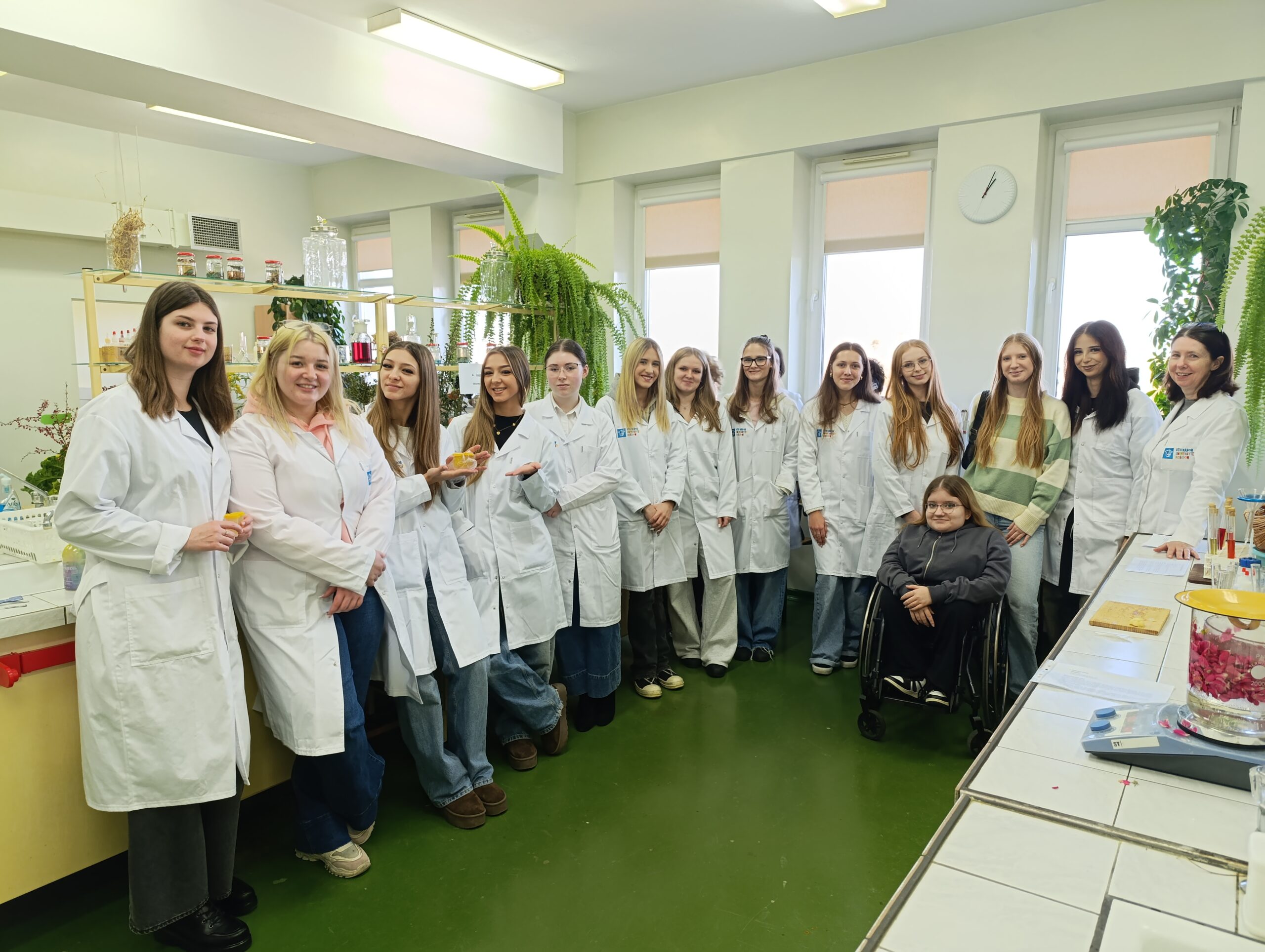 W dniu 19.11.2025r. Katedra Kosmetologii gościła uczniów klasy kosmetologicznej XI Liceum Ogólnokształcącego im. Stanisława Staszica w Radomiu, dla których zorganizowano warsztaty w Laboratorium Fitokosmetyków. Uczniowie rozpoczęli spotkanie od rozpoznania roślin znajdujących się na pracowni, które są potencjalnym źródłem składników aktywnych kosmetyków. Uczniowie wraz z opiekunem, Panią Beatą Chojnacką, mieli możliwość wytworzenia kosmetyków, wykorzystując jedynie surowce naturalne. Nauczyciele akademiccy prowadzący spotkanie: dr Małgorzata Okulska-Bożek, dr Ewa Jabłońska oraz dr hab. inż. Małgorzata Zięba, prof. URad zadbały, aby zajęcia przyniosły naszym Gościom wiele radości i satysfakcji.