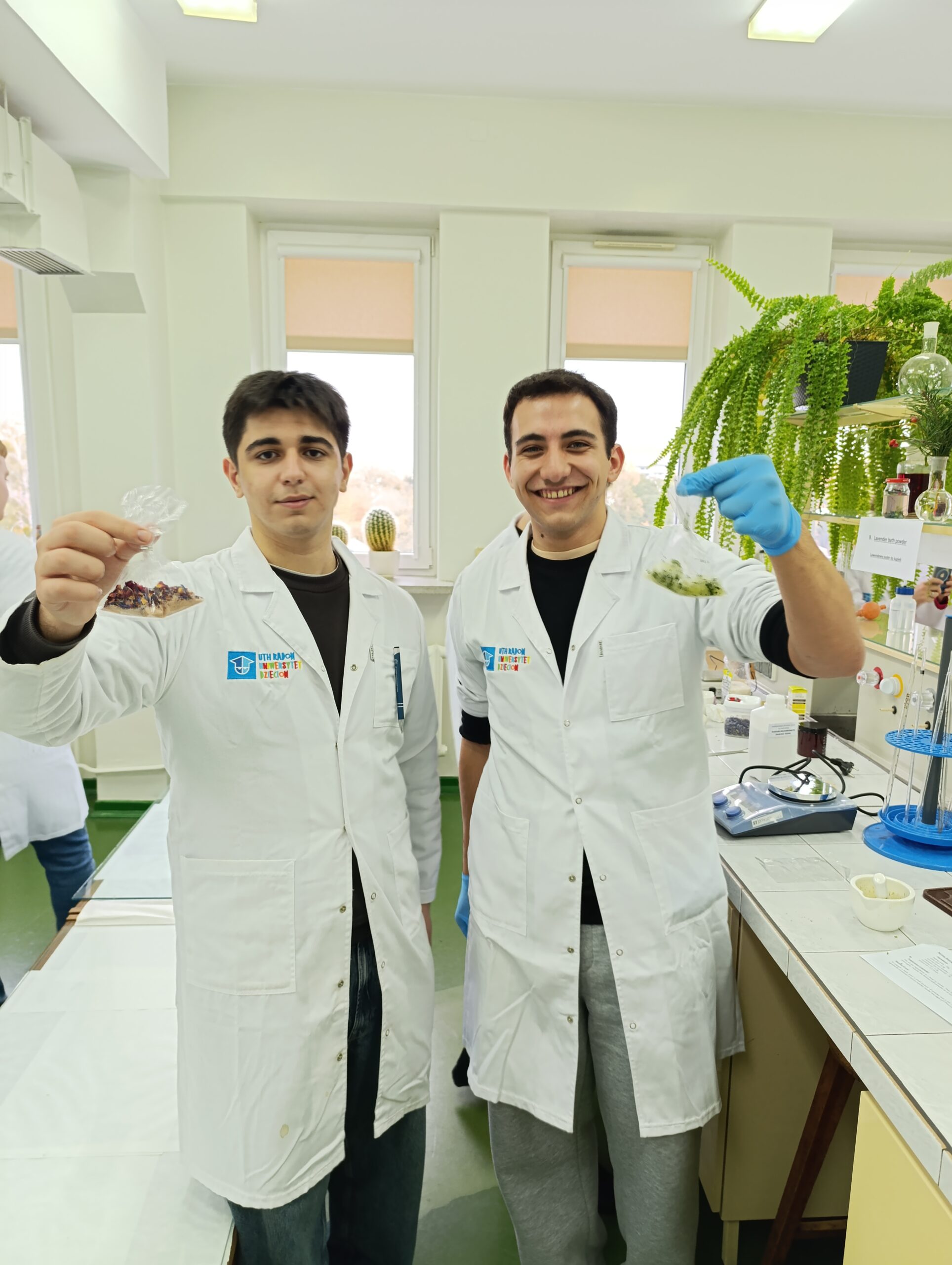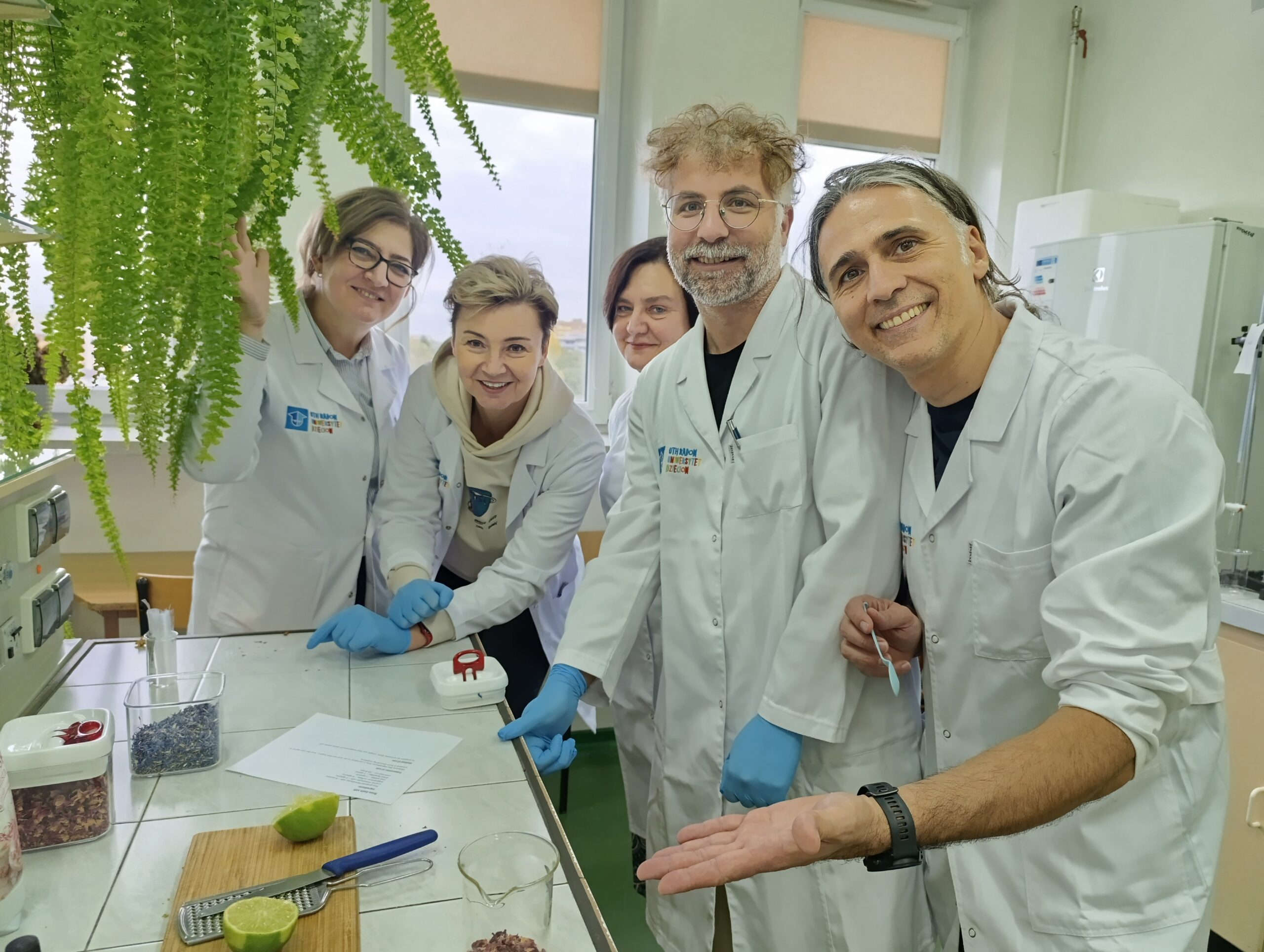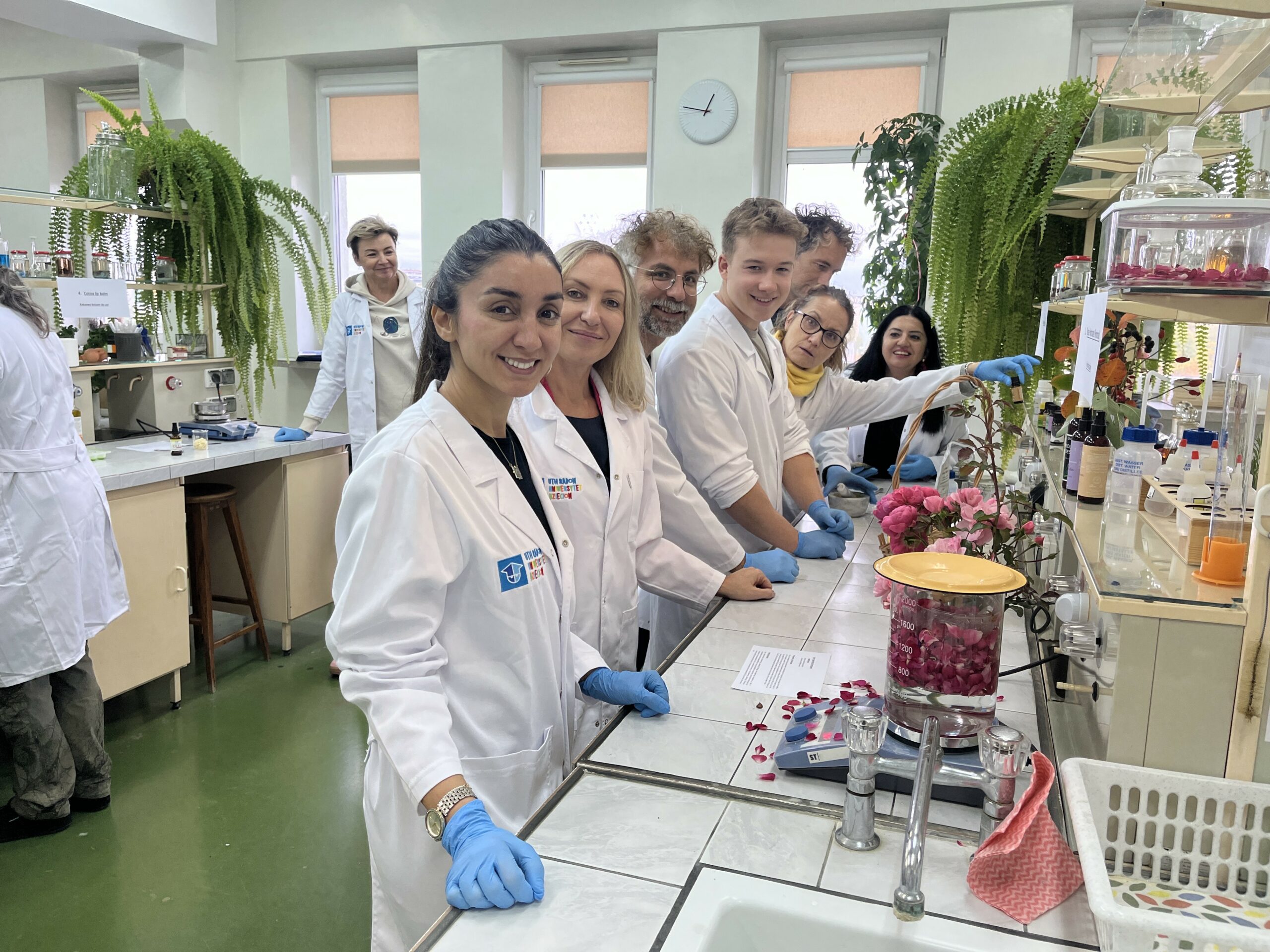 W dniu 16.10.2025r. Katedra Kosmetologii miała przyjemność gościć uczniów z Turcji, Niemiec i Włoch współpracujących z Zespołem Szkół Elektronicznych w Radomiu w ramach Projektu Erasmus+ „Ecological Education”. Warsztaty w Laboratorium Fitokosmetyków dla Uczestników Programu poprowadziły: dr Małgorzata Okulska-Bożek, dr Ewa Jabłońska oraz dr hab. inż. Małgorzata Zięba, prof. URad. Goście mieli możliwość samodzielnego wykonania ekologicznych, naturalnych kosmetyków opartych głównie na surowcach roślinnych, m.in.: cytrynowego body scrub’u, balsamu do ust z masłem kokosowym, miętowo-limonkowej soli do kąpieli, hydrolatu różanego, żelu do mycia ciała z miodem. Bardzo dziękujemy wszystkim uczestnikom Programu Erasmus+ za aktywny udział w warsztatach. Mamy nadzieję na dalszą ciekawą współpracę.